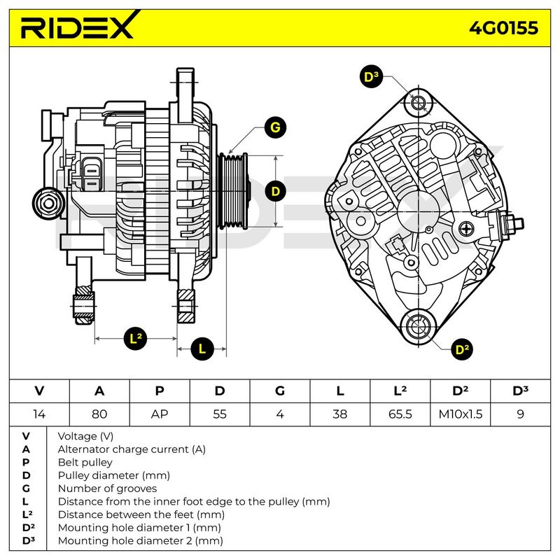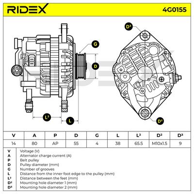 Distance entre poulie et alternateur [mm] : 39,5